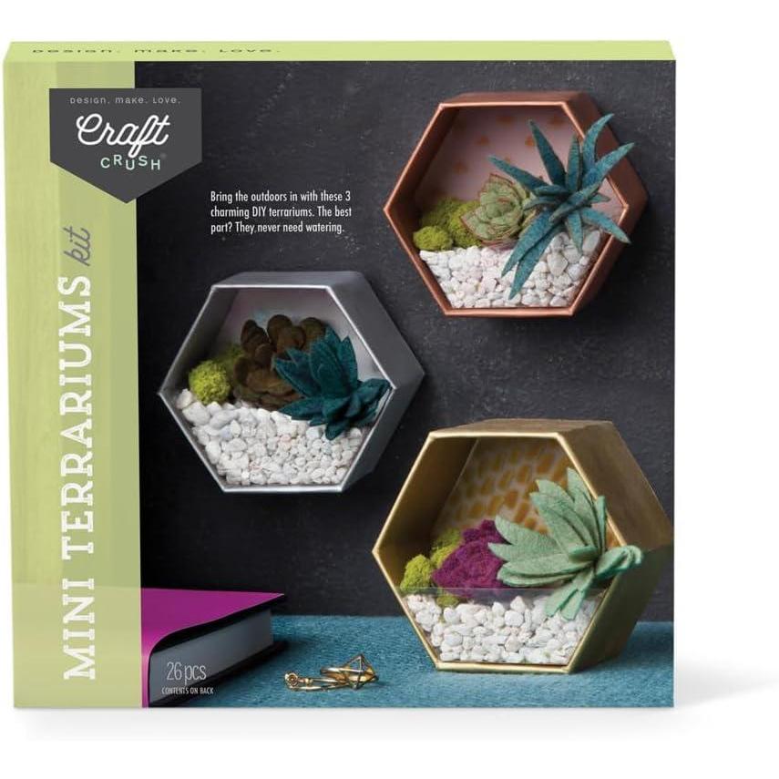 Craft Crush — Mini Plants Terrariums Easy Fun Arts and Craft Kit — Make 3 Charming Faux Terrariums! — For Ages 13 and Up(Small)