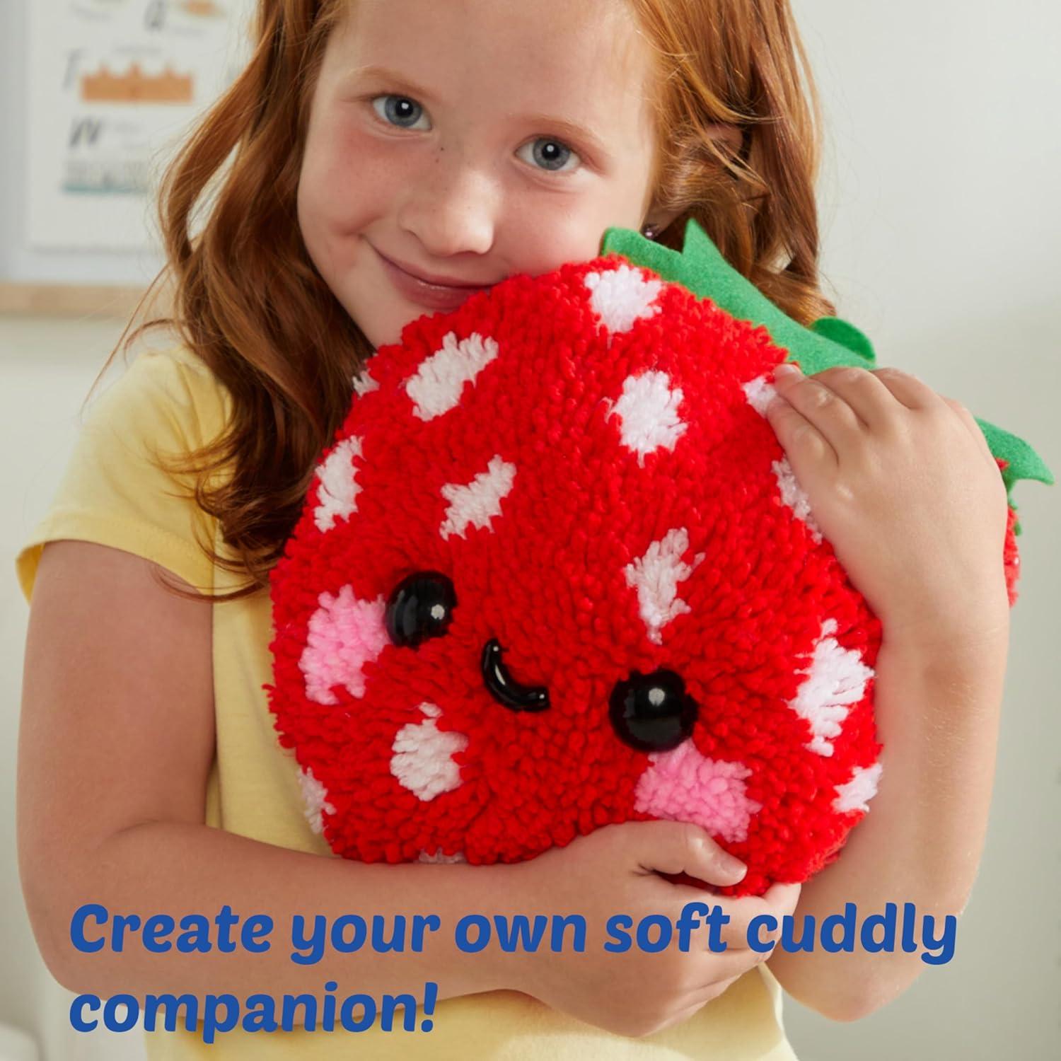 EVERYTHING INCLUDED – This DIY craft kit for girls comes with everything you need to make a strawberry-shaped pillow from the latch hook craft tool, yarn, stuffing, canvas form, and face details