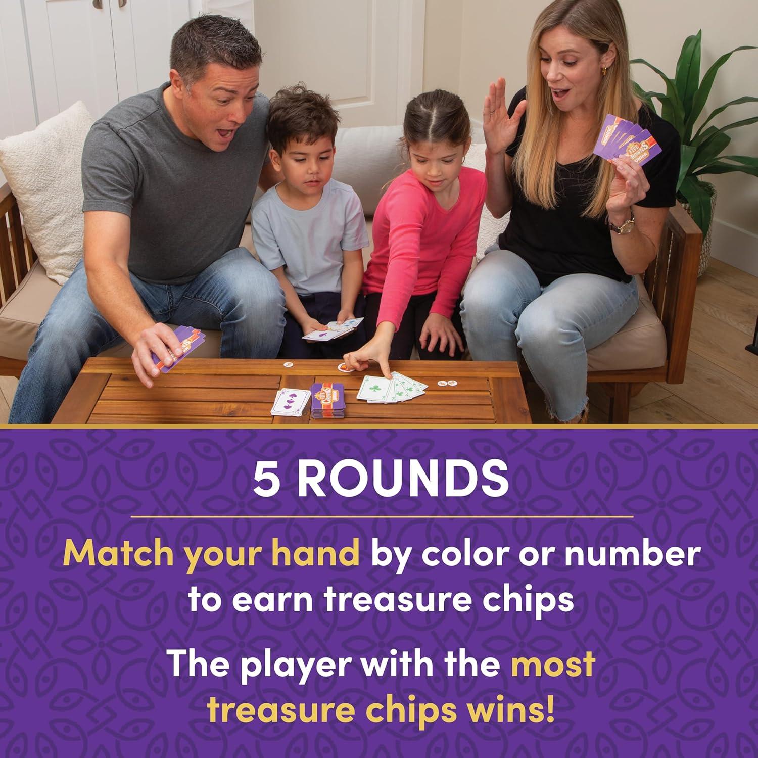 Five Crowns is a kid-style rummy card game that the whole family will enjoy! Match your hand by color or number to earn treasure chips! It's educational and fun, teaching critical thinking and math skills using a simplified version of the award-winning game Five Crowns! It’s an addictive family game that provides great interaction for kids and adults! For 2 to 6 players ages 5 and up.