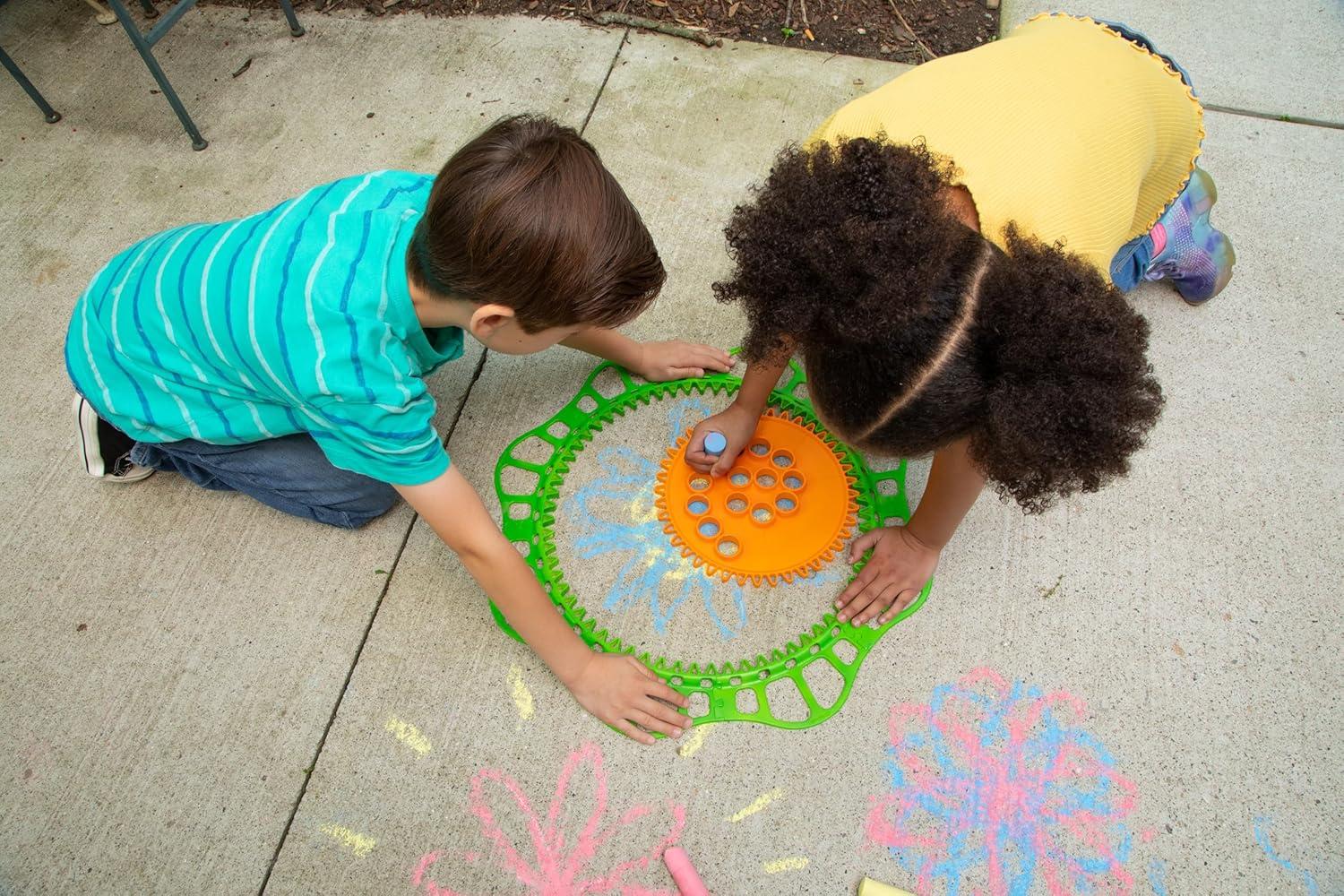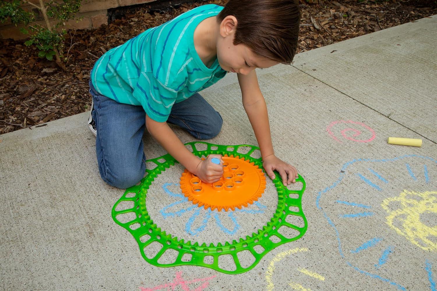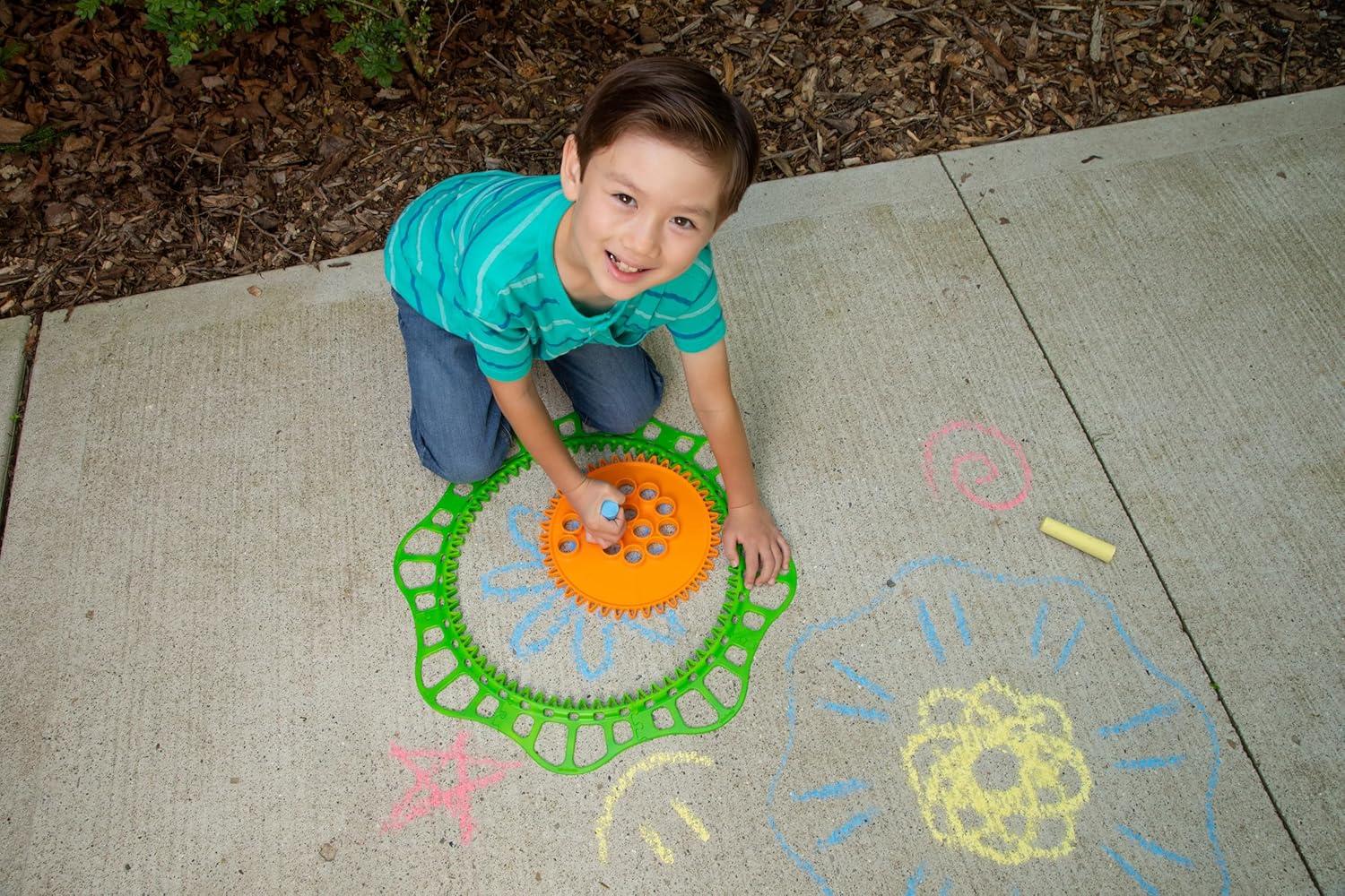 Ready to Play: Comes with everything kids need to get started: a giant drawing gear, 8 outdoor frame pieces, and 3 jumbo pieces of chalk for instant spiral fun.