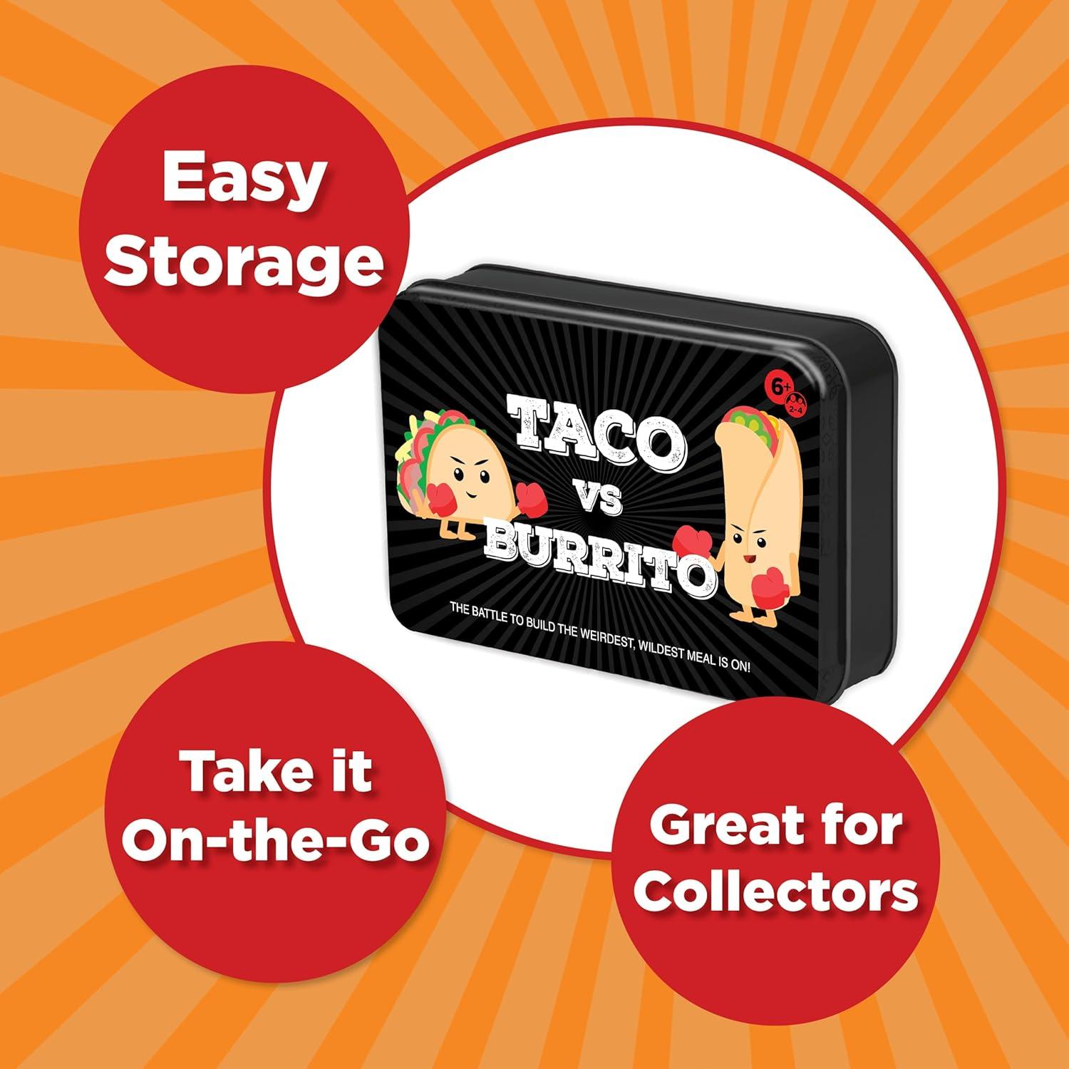 COLLECTOR TIN: Experience the wildly popular Taco vs Burrito card game in an all-new premium metal tin, built for collectors, gifting, and travel. Keeps cards safe, organized, and ready for game night anywhere.